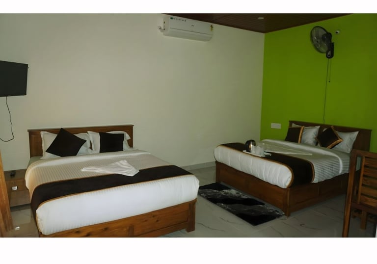 3. Comfortable Stay with Good Amenities 🛏️ – Rooms or cottages include essential comforts like air conditioning, private bathrooms, and balconies to relax after outdoor fun.